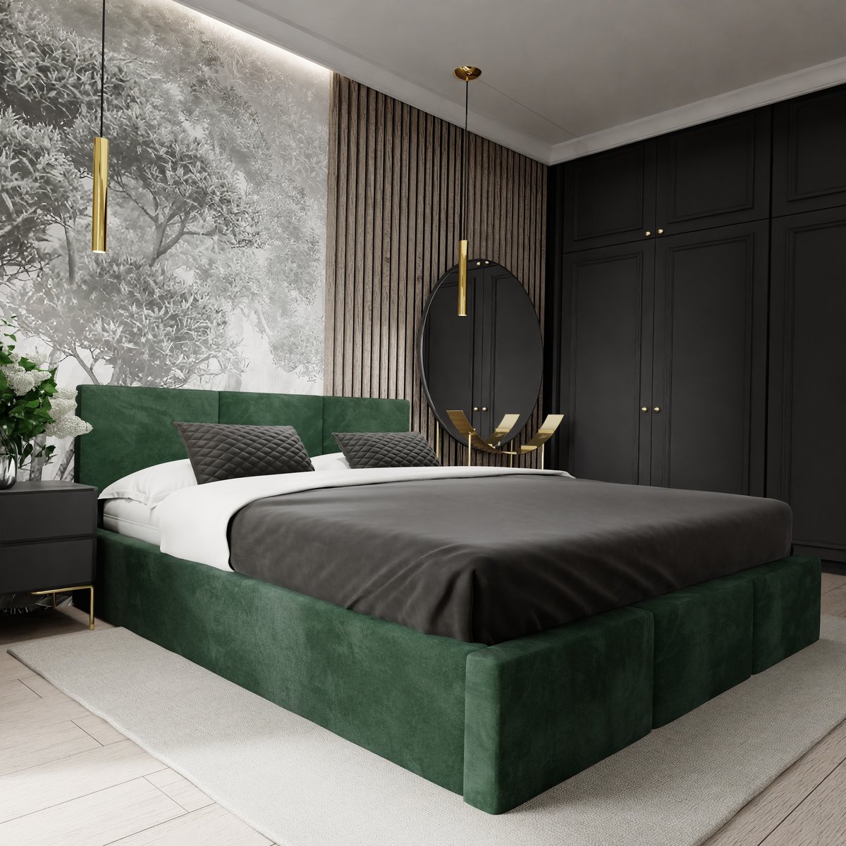 | Nazwa: | Łóżko tapicerowane do sypialni 160cm x 200cm łóżko podwójne z pojemnikiem butelkowa zieleń |