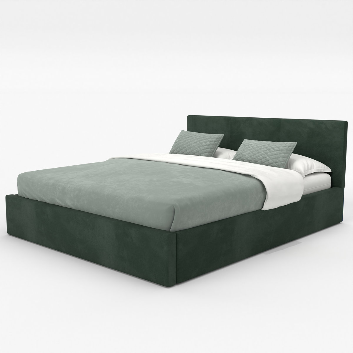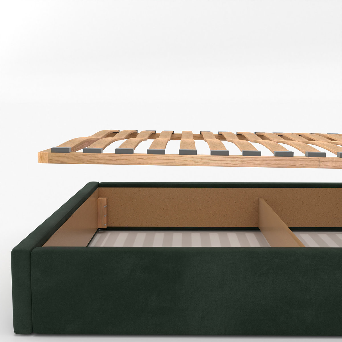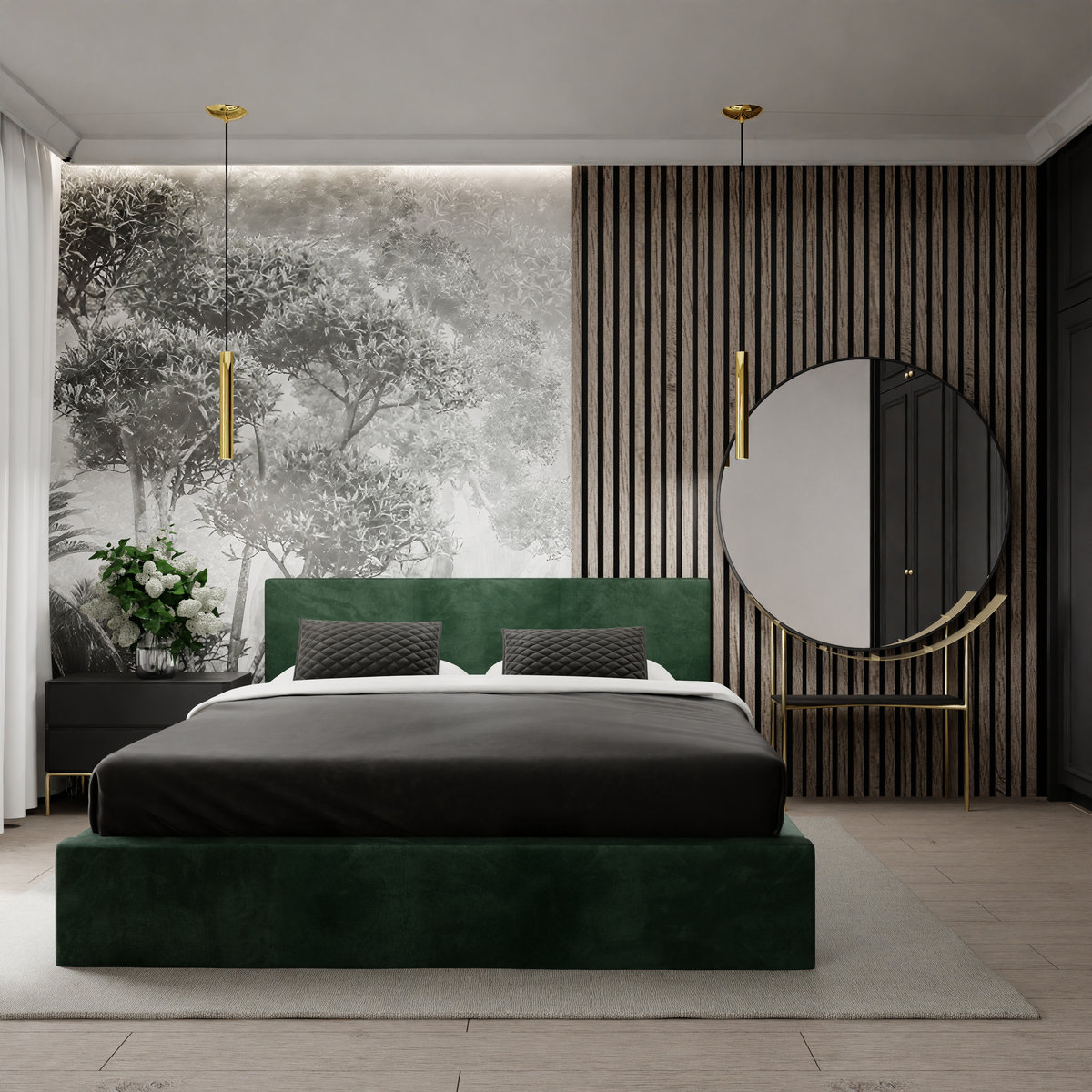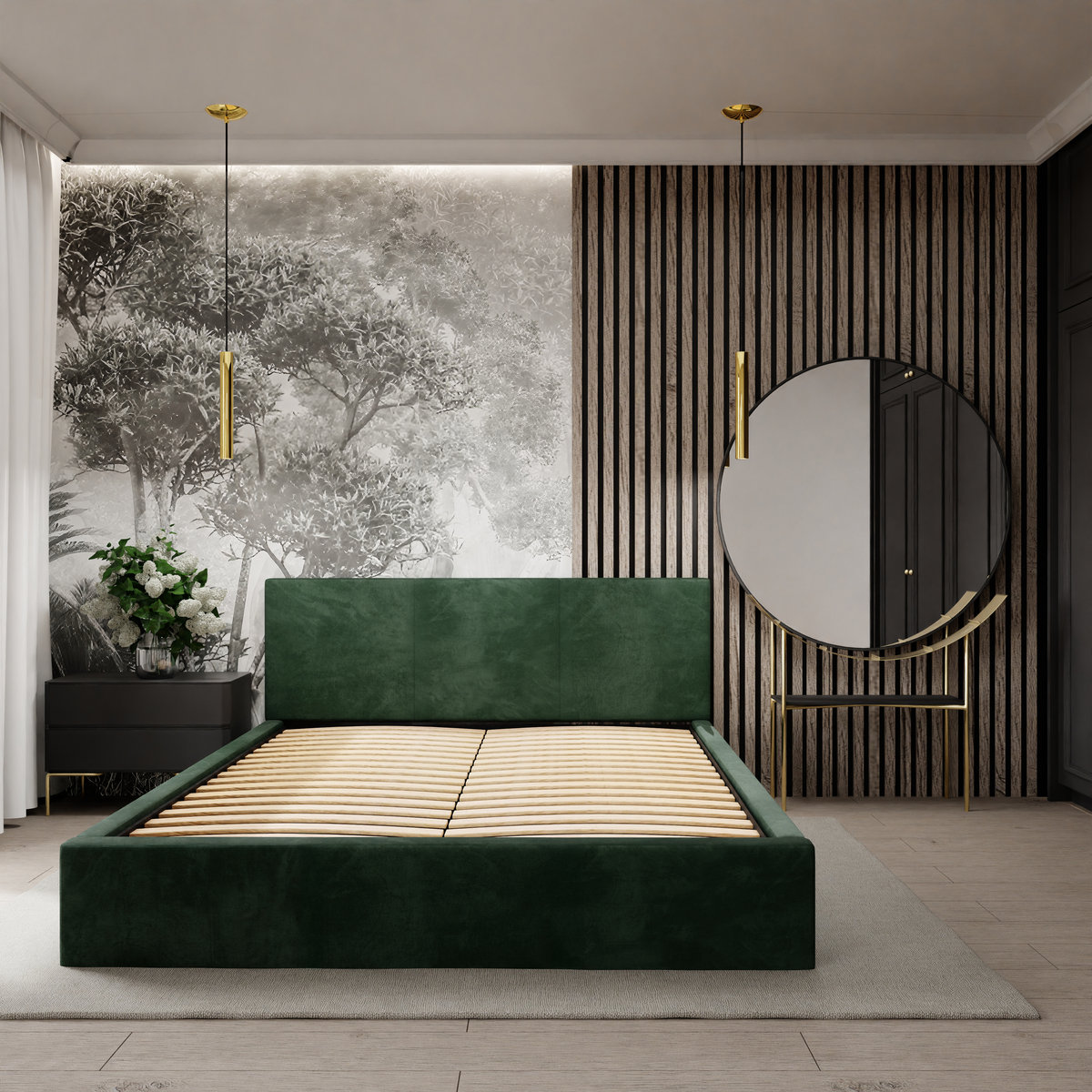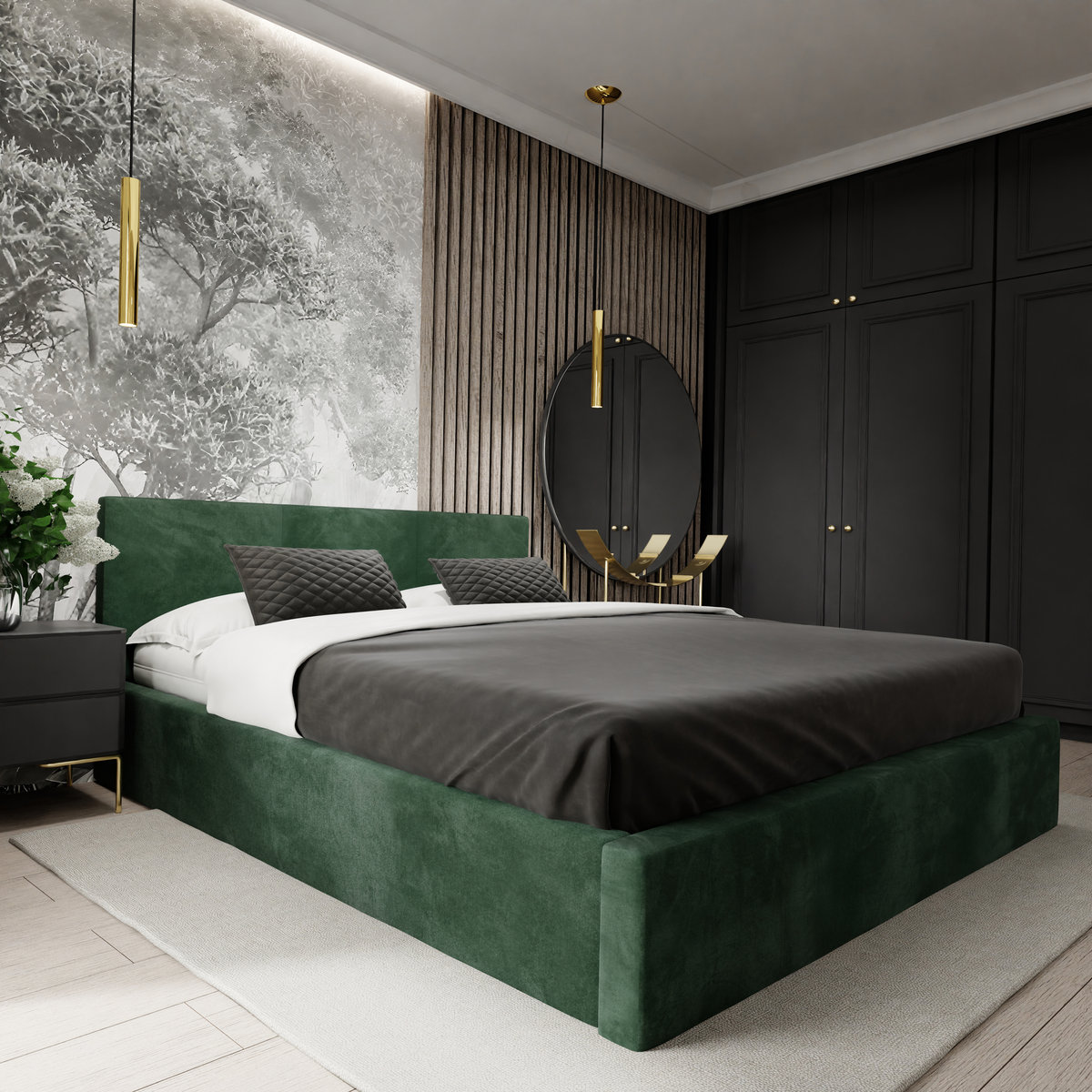 ŁÓŻKO TAPICEROWANE DO SYPIALNI 160cm x 200cm ŁÓŻKO PODWÓJNE Z POJEMNIKIEM BUTELKOWA ZIELEŃ