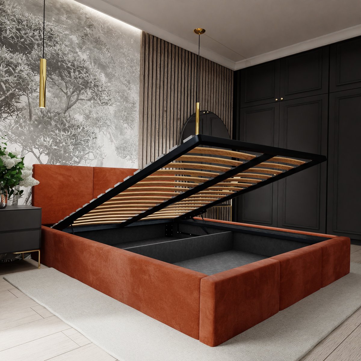 Stylowe łóżko tapicerowane z pojemnikiem na pościel 160x200cm to idealne rozwiązanie dla osób ceniących wygodę, funkcjonalność i elegancki design. Dzięki solidnej konstrukcji, praktycznemu schowkowi oraz wysokiej jakości materiałom, to łóżko stanie się centralnym punktem każdej sypialni, zapewniając komfortowy sen i dodatkową przestrzeń do przechowywania.