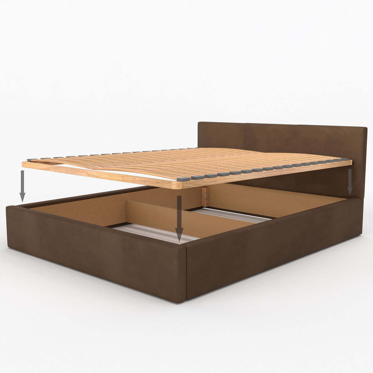 Potrzebujesz więcej miejsca na pościel, koce czy sezonowe tekstylia? Ten model łóżka został wyposażony w pojemny schowek, do którego uzyskasz dostęp poprzez zdjęcie lekkiego stelaża.