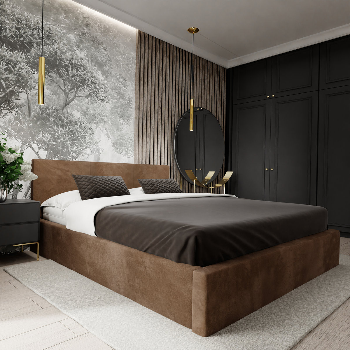 ŁÓŻKO TAPICEROWANE DO SYPIALNI 180cm x 200cm ŁÓŻKO PODWÓJNE Z POJEMNIKIEM BRĄZOWE