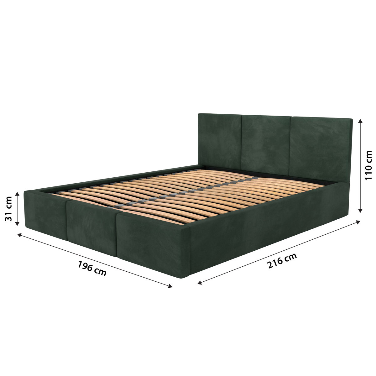 ŁÓŻKO TAPICEROWANE DO SYPIALNI 180cm x 200cm ŁÓŻKO PODWÓJNE Z POJEMNIKIEM BUTELKOWA ZIELEŃ