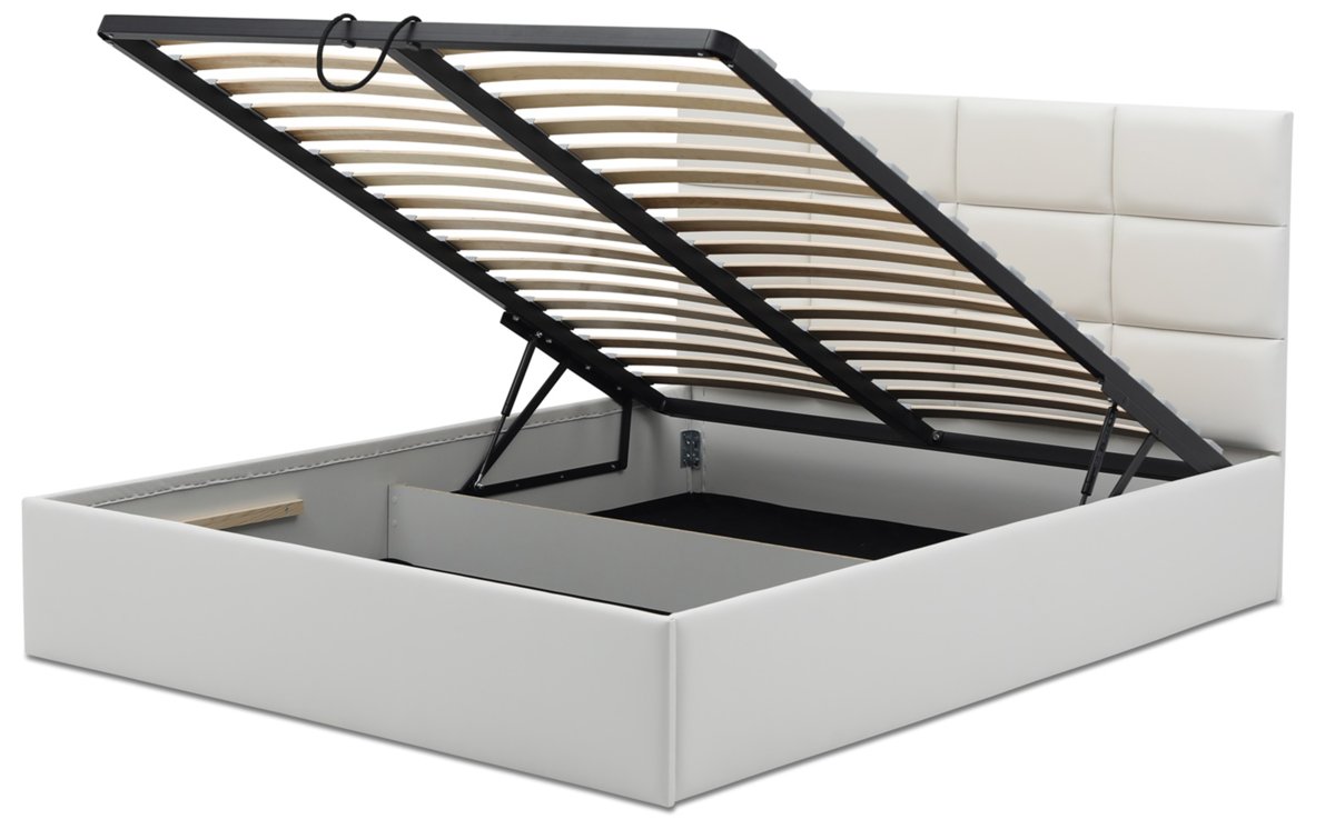 Wygodny stelaż z podnośnikiem gazowym zapewnia swobodny i bezpieczny dostęp do przestronnego pojemnika na pościel.