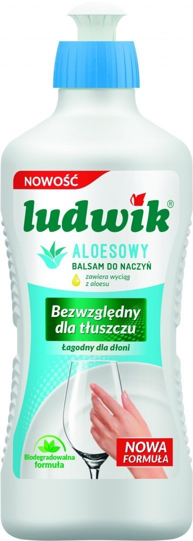 LUDWIK 450g Płyn do naczyń aloesowy - Lider płynów do mycia naczyń. Niesamowicie wydajny, o idealnej gęstości, pozostawiający po sobie przyjemnym aloesowym zapachu. Skuteczny w usuwaniu tłustych zabrudzeń.