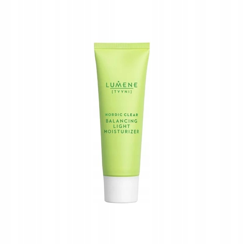 LUMENE – TYYNI NORMALIZUJĄCO-NAWILŻAJĄCY KREM DO TWARZY NORDIC CLEAR 50 MLNormalizująco-nawilżający lekki krem do twarzy Nordic Clear z linii TYYNI optymalnie nawilża i normalizuje skórę tłustą, mieszaną, skłonną do niedoskonałości. Pomaga zmniejszyć widoczność porów i łagodzi zaczerwienienia. Formuła zawiera silną mieszankę składników: normalizujący ekstrakt z Nordyckiej Wiązówki Błotnej, kojący ekstrakt z Arktycznego Różeńca Górskiego oraz Nordyckie Czerwone Algi o właściwościach nawilżających i zmniejszający wydzielanie sebum glukonian cynku. Pozostawia skórę zmatowioną, wygładzoną i miękką. Nie daje uczucia lepkości na skórze, idealnie nadaje się pod makijaż. Wegańska, niekomedogenna formuła odpowiednia dla skóry tłustej, mieszanej, skłonnej do niedoskonałości. Zawiera dziko rosnące składniki pochodzenia naturalnego. Opakowanie wykonane z materiałów pochodzących z recyklingu i nadających się do recyklingu.100% vegan, 97% składników pochodzenia naturalnegoSposób użycia:Aplikuj kosmetyk na oczyszczoną uprzednio skórę. Przy użyciu opuszków palców wmasuj krem w skórę twarzy i szyi. Dla uzyskania najlepszych efektów stosuj po użyciu serum z serii TYYNI.