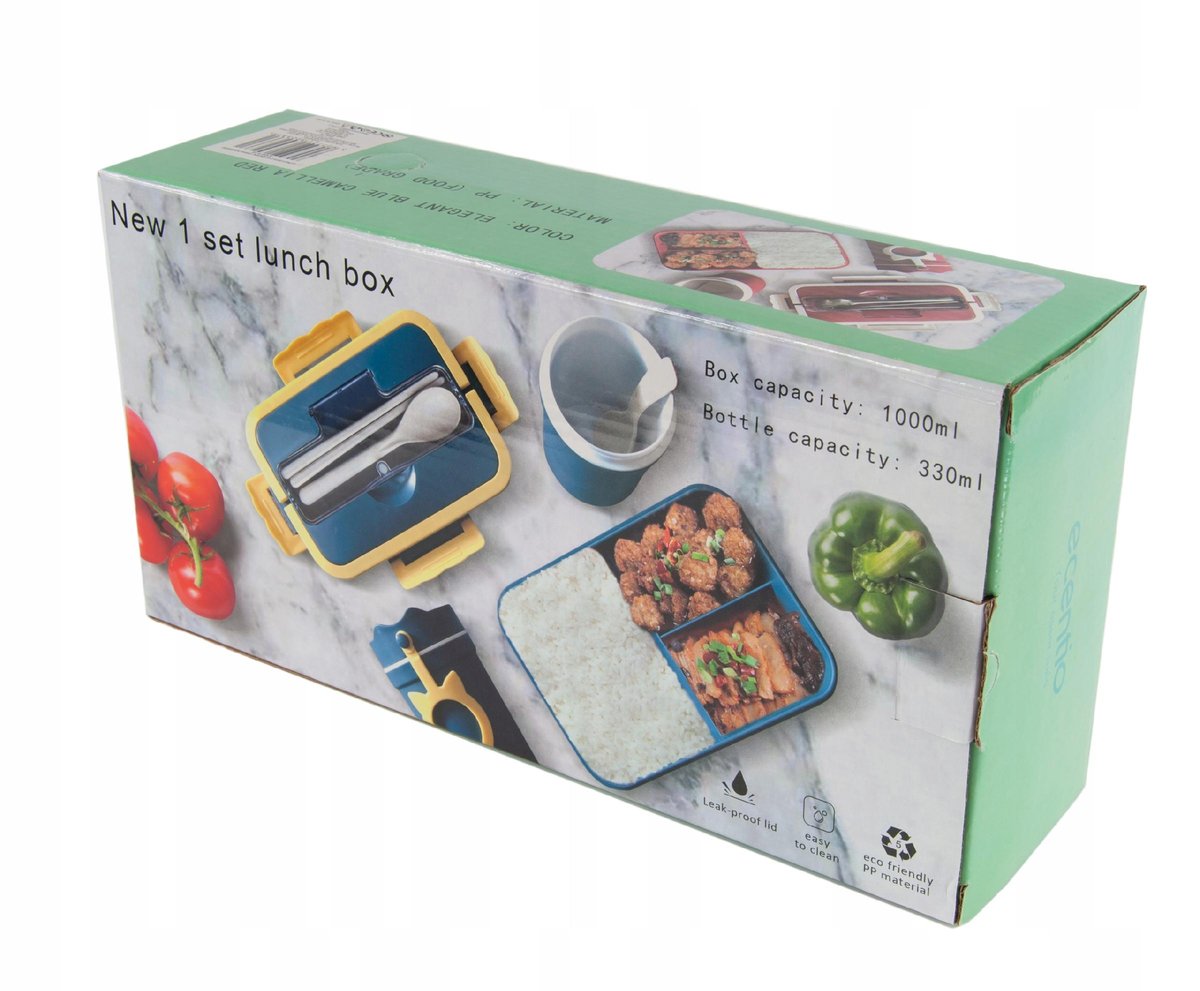 PRAKTYCZNY ZESTAW LUNCH BOX 1000ml + Kubek 300ml + SZTUĆCE