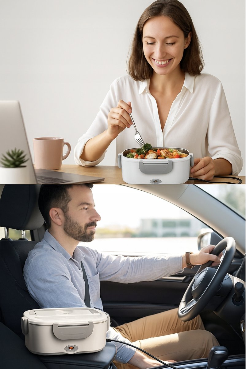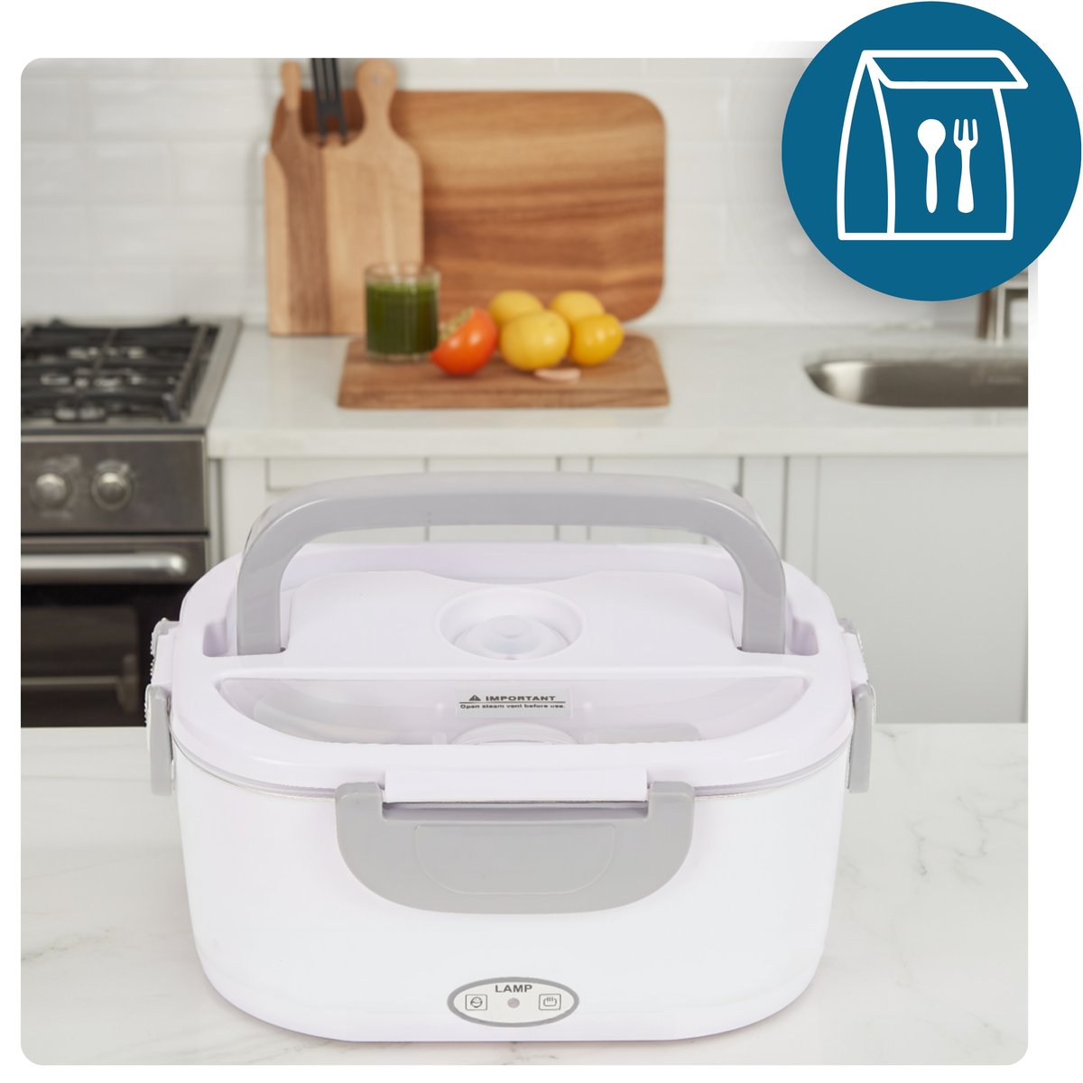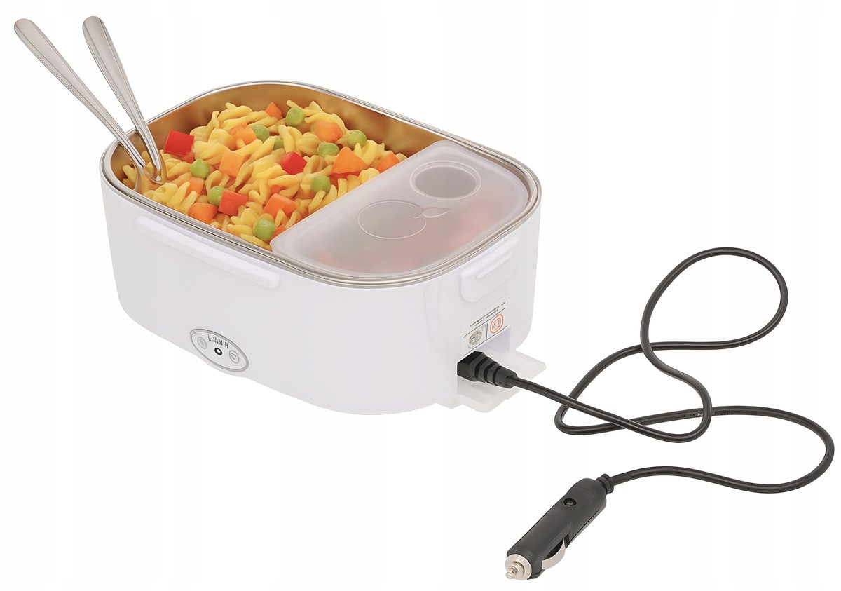 Elektryczny podgrzewacz pozwala cieszyć się ciepłym, domowym posiłkiem w dowolnym miejscu. Solidna konstrukcja i szczelne zamknięcie na zatrzaski sprawiają, że jedzenie na długo zachowuje świeżość i aromat.