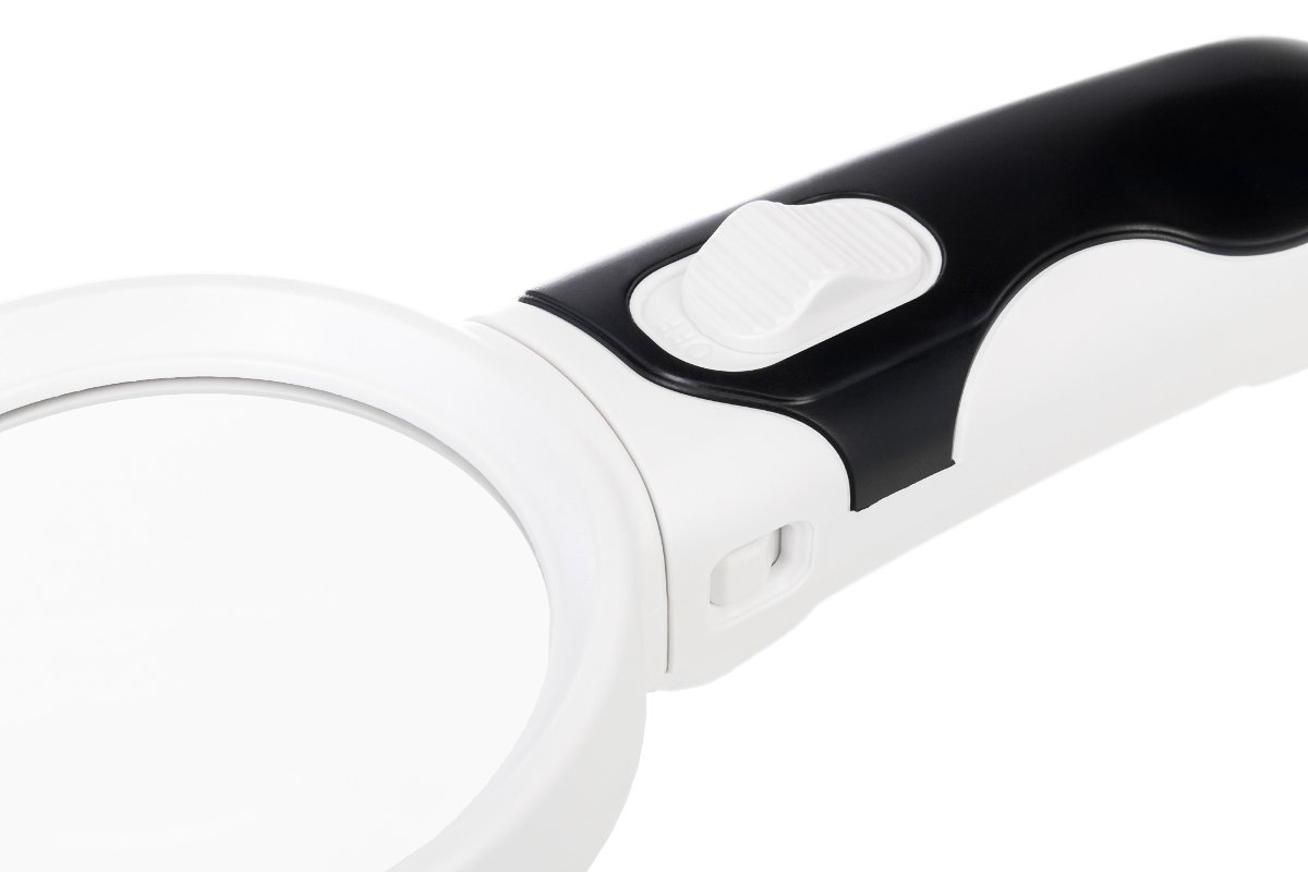 Soczewka o dużym powiększeniu służy do badania małych obiektów, a soczewka o małym powiększeniu – do czytania. Oświetlenie LED jest zamontowane w uchwycie. Równomiernie oświetla całą powierzchnię roboczą pod soczewką. Lupy Levenhuk Zeno Multi można używać do napraw małych elementów, czytania, badania dzieł sztuki i wyceny monet.