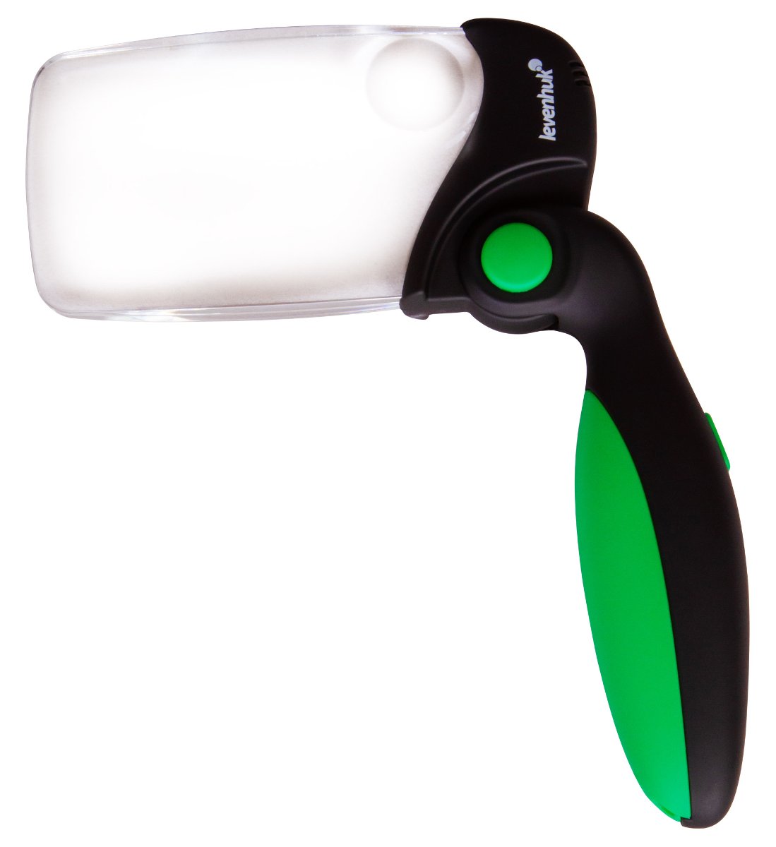 Obok soczewki umieszczono oświetlenie LED. Jego jasność reguluje się przy użyciu przełącznika na korpusie. Oświetlenie ma zasilanie bateryjne (baterie kupowane osobno). Właściwości: Składana lupa ręczna Duża dwuogniskowa soczewka Dwa powiększenia: 2 i 6 razy