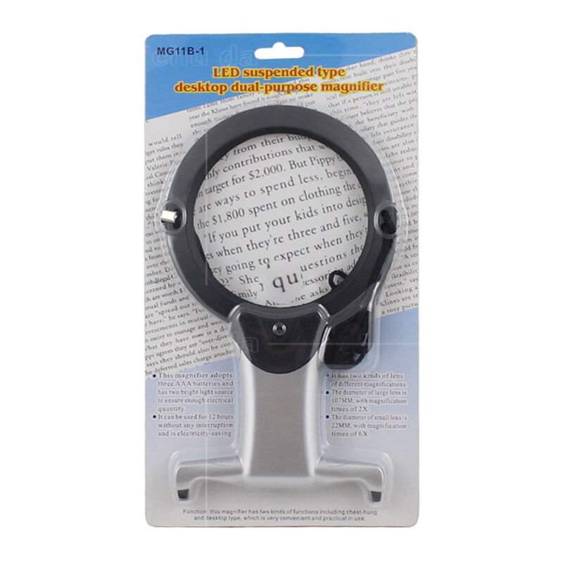 Lupa na szyję i biurko. 2 wbudowane diody LED z włącznikiem/wyłącznikiem. Idealna do sprawdzania małych tekstów, zdjęć, gazet, instrukcji medycznych itp.