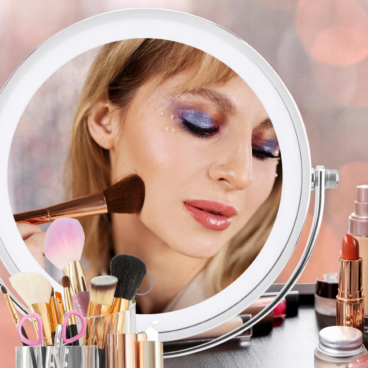 | Nazwa: | Lusterko kosmetyczne do makijażu podświetlane Led obrotowe srebrne okrągłe |