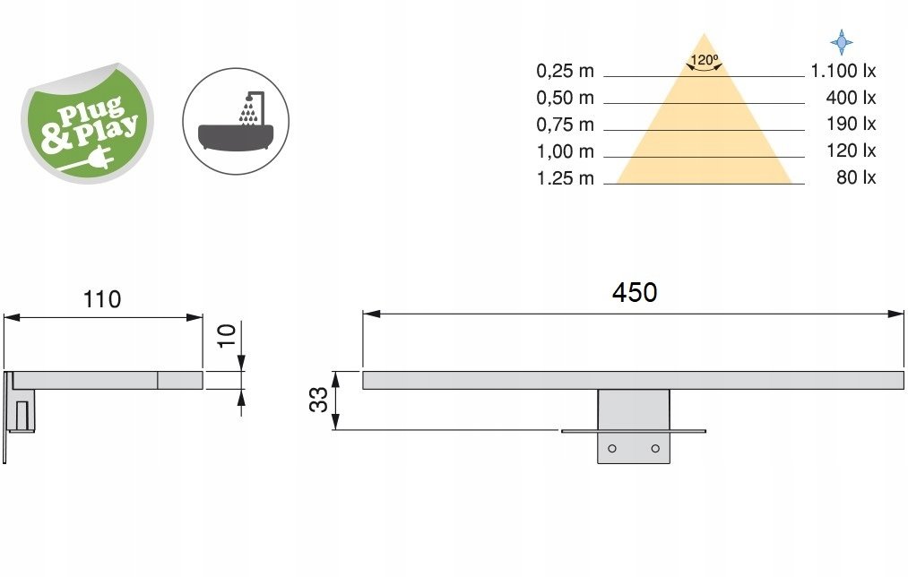 - bardzo łatwy montaż - kinkiet nad lustrem zainstalujesz w ciągu kilku minut