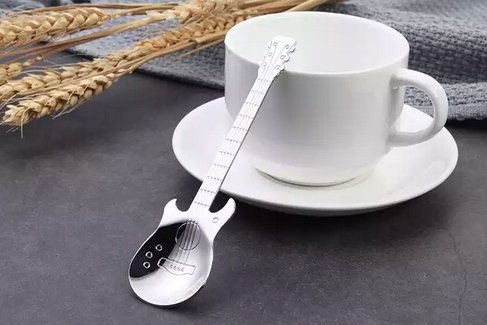 Piękna łyżeczka wyróżniająca się znacząco na tle innych. Ze względu na kształt gitary z pewnością przykują uwagę naszych znajomych !