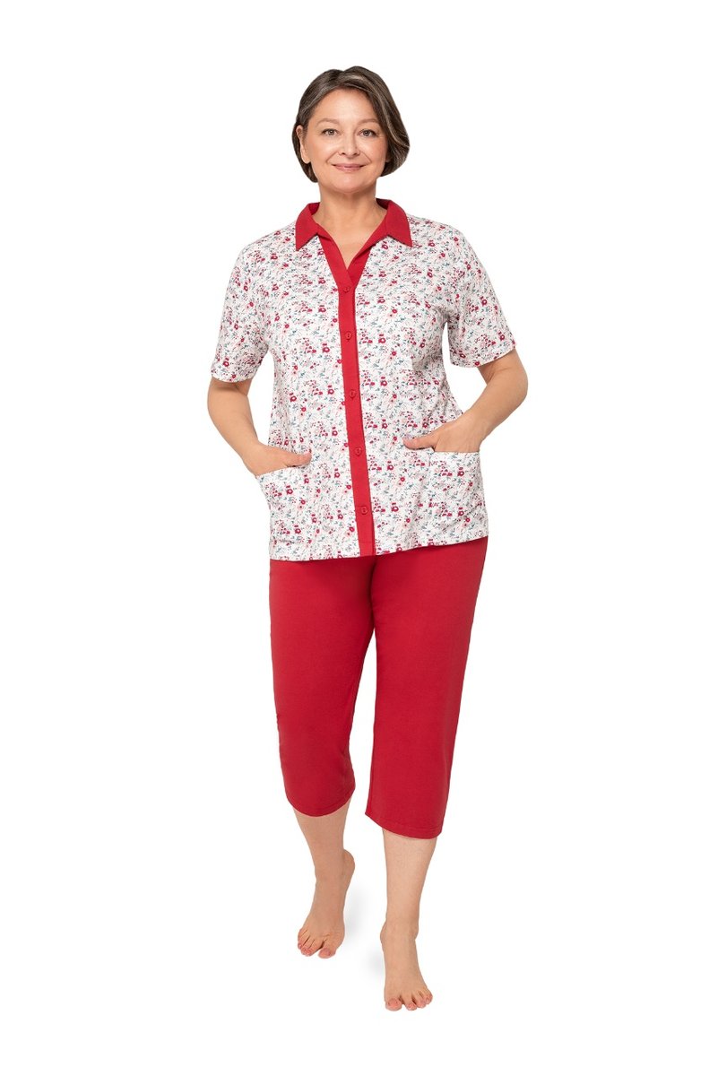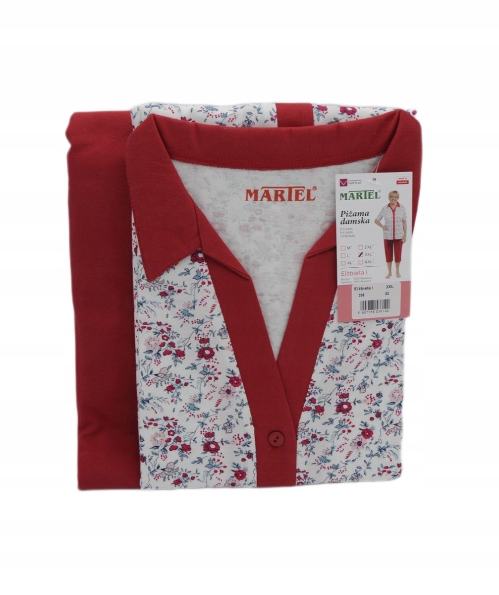 | Nazwa: | Piżama Damska M Rozpinana Krótki Rękaw Spodnie 3/4 Bawełniana Czerwona |