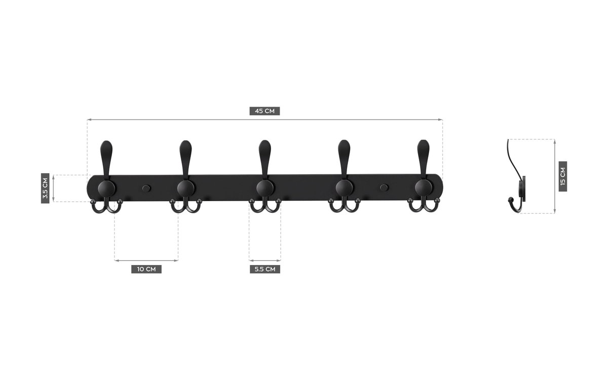 Cechy szczególne: Metalowy wieszak na kurtki, ubrania, akcesoria Uniwersalny design, pasuje do każdego wnętrza Sprawdzi się w domu, w biurze, w miejscach publicznych Aż 15 haczyków do odwieszania ...