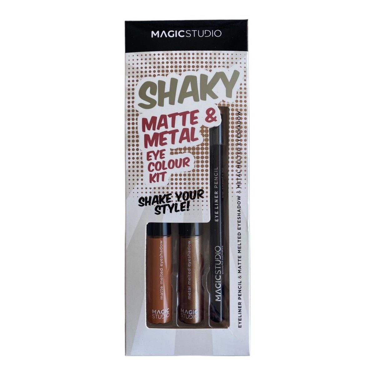 MAGIC STUDIOSHAKY MATTE & METALEYE COLOUR KITZESTAW DO MAKIJAŻU OCZUZestaw składa się z:Kredka do oczuMatowy płynny cień do powiekMetaliczny płynny cień do powiekZestaw SHAKY od marki MAGIC STUDIO to