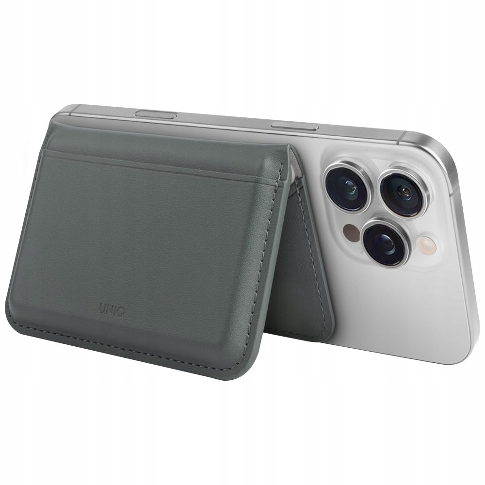 Dane Techniczne Marka UNIQ Kolekcja Magnetyczny portfel RFID UNIQ Lyden DS stojak na telefon Materiał PU / Skóra ekologiczna Kolor Zielony Kompatybilność iPhone z MagSafe, etui z MagSafe