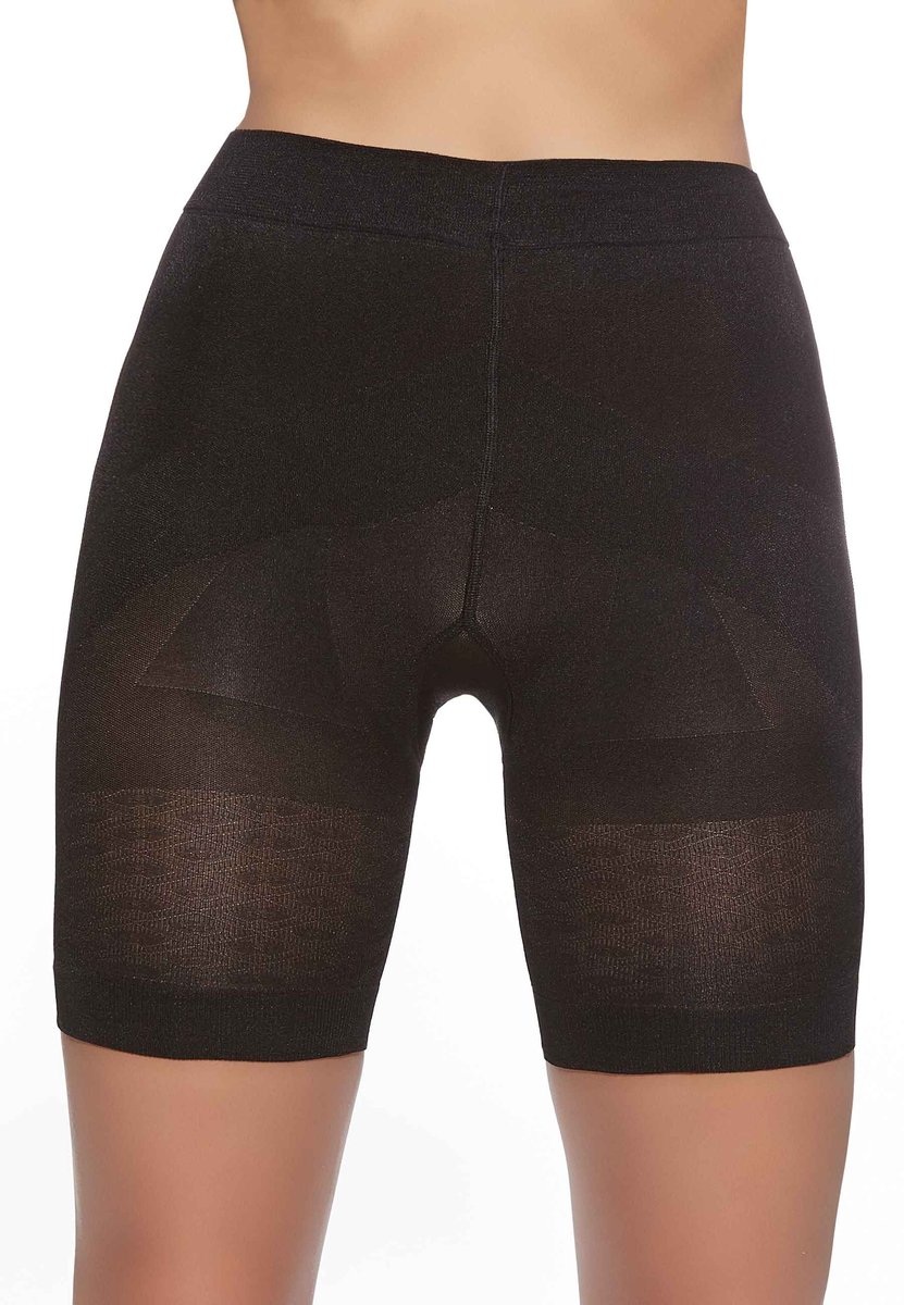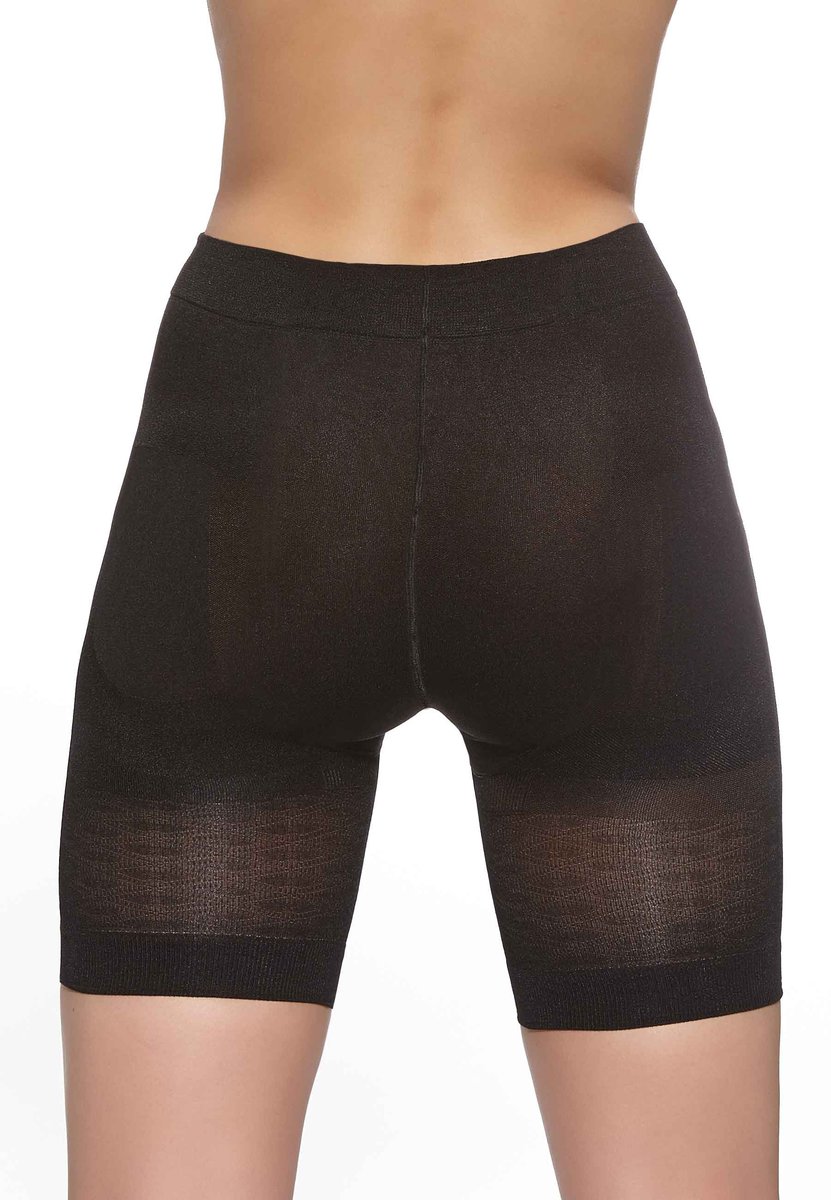 Majtki wyszczuplające z poliamidu z dużą zawartością przędzy elastycznej typu lycra co daje efekt wyszczuplania sylwetki. Dodatkowo pod pośladkami zastosowano wzmocnione pasy które dają efekt PUSH-UP.