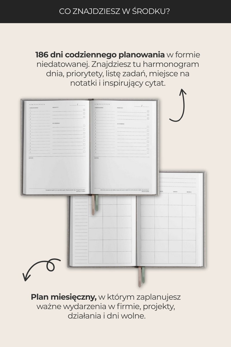 WNĘTRZE NASZEGO PLANNERA BIZNESOWEGO: 186 stron do planowania dziennego w minimalistycznej formie. Wpisz datę samodzielnie i zacznij planować w odpowiednim dla Ciebie momencie. Planner ...