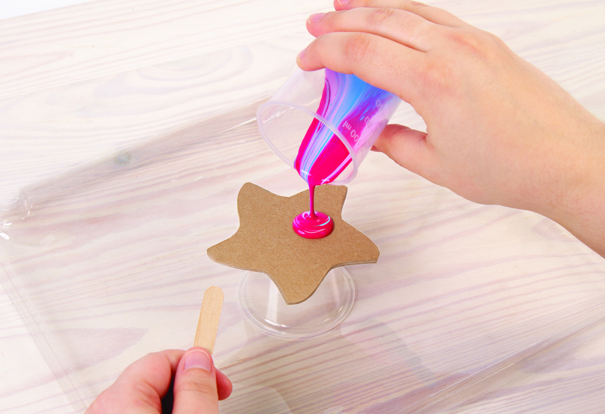 Zestaw pozwala na stworzenie trzech wyjątkowych dzieł metodą pouringu. Kolorowe obrazy doskonale zaprezentują się jako ozdoba pokoju nastolatki.