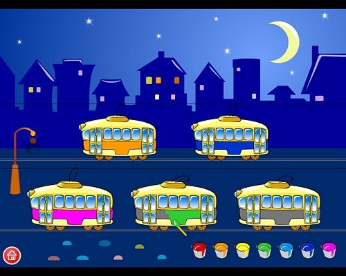 Farby: nocą kolorowe tramwaje wracają do zajezdni. W ciemnościach wydają się szare. Spróbuj zapamiętać jakiego są koloru i pomaluj je we właściwy sposób. Gra ćwiczy spostrzegawczość i zdolność zapamiętywania.