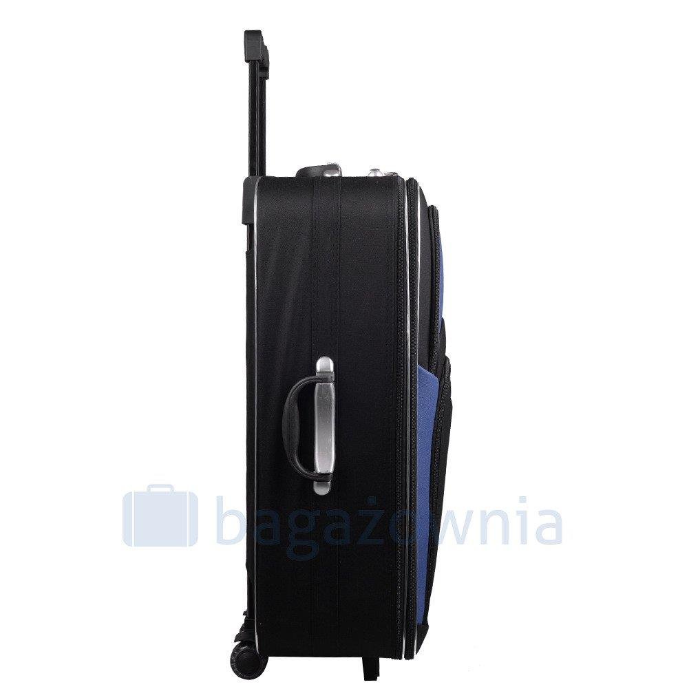 Budowa: walizka miękka wykonana w konstrukcji typu B materiał poliester (odporny na przecieranie, trudno chłonący zabrudzenia, 100% wodoodporny, niefarbujący) koła (koła wykonane z kauczuku ...