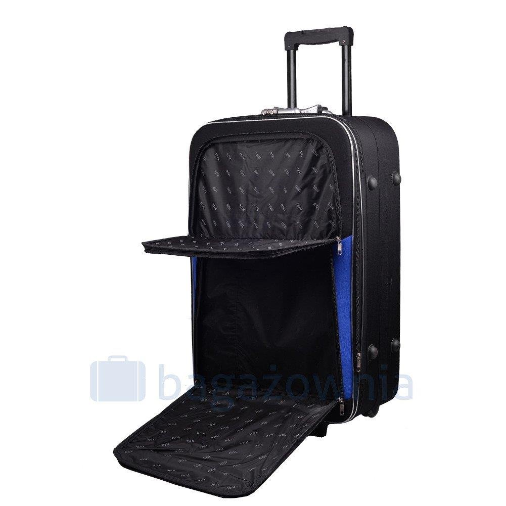 Budowa: walizka miękka wykonana w konstrukcji typu B materiał poliester (odporny na przecieranie, trudno chłonący zabrudzenia, 100% wodoodporny, niefarbujący) koła (koła wykonane z kauczuku ...