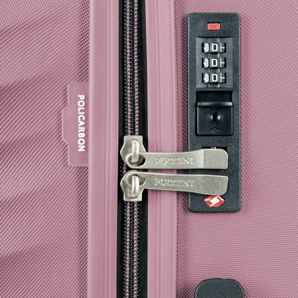 dodatkowo wyposażona w wbudowany do wnętrza walizki zamek szyfrowy TSA (Travel Security Agency, bardzo przydatny w podróżach do USA)