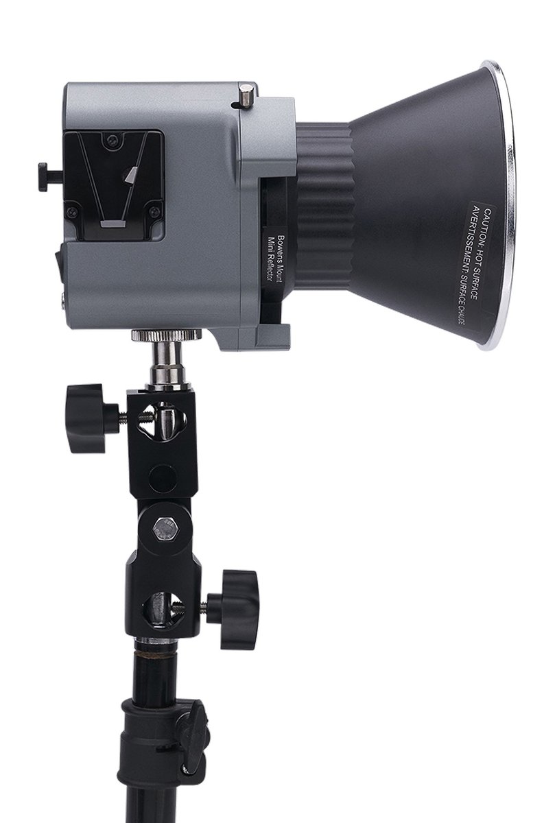 Lampa LED Amaran COB 60d S wspiera popularny standard Bowens wykorzystywany do montażu przeróżnych modyfikatorów światła. To szeroko rozpowszechnione rozwiązanie w świecie filmu i fotografii. Setki akcesoriów, takich jak wrota, czasze, softboxy, gridy lub strumienice czekają na połączenie z modelem Amaran COB 60d S. Wisienką na torcie jest otwór na parasolkę, który wbudowano w przegubowy adapter montażowy będący częścią zestawu.