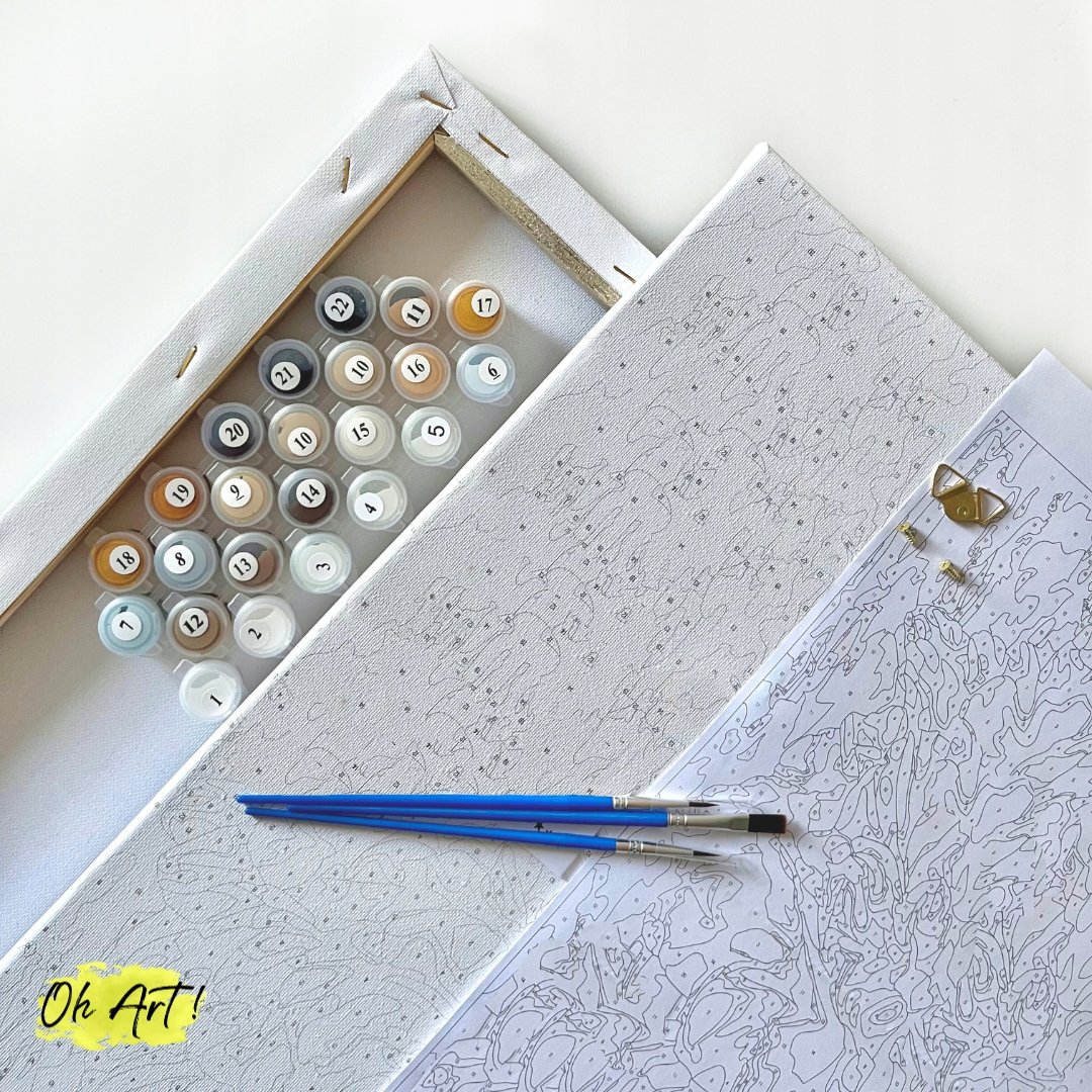 Płótno wykonane ze 100% bawełny, zagruntowane i naciągnięte na solidny blejtram z sosny. Dzięki temu zestaw gotowy do malowania od razu po otwarciu opakowania.