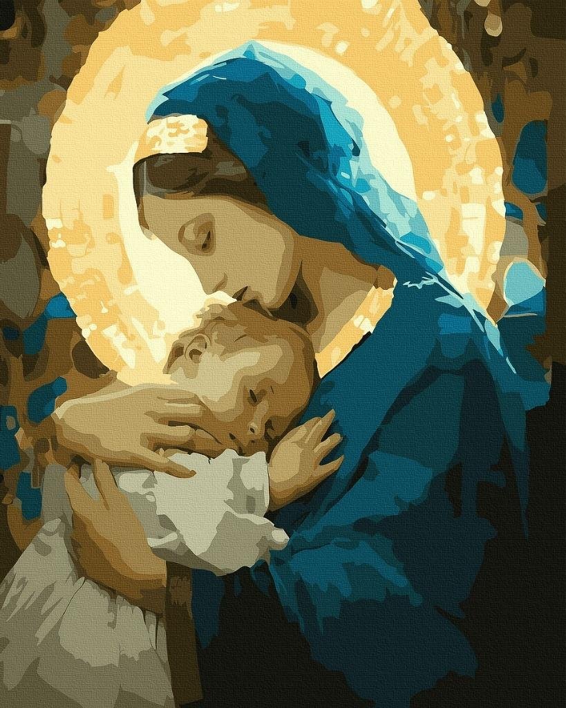 Ten obraz to kwintesencja miłości, spokoju i świętości. Przedstawia Matkę Boską tulącą Dzieciątko z niezwykłą czułością i troską. Złota aura wokół postaci nadaje kompozycji mistycznego i duchowego charakteru, a stonowane, klasyczne kolory przywołują klimat renesansowego malarstwa.