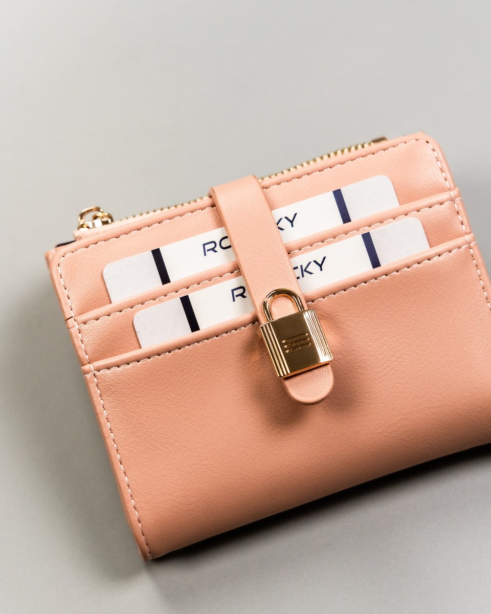 #️⃣ Mini kłódka | Portfel posiada wyjątkowe zapięcie w postaci zatrzasku imitującego mini kłódkę. Obok portfela z takim zapięciem nikt nie przejdzie obojętnie.