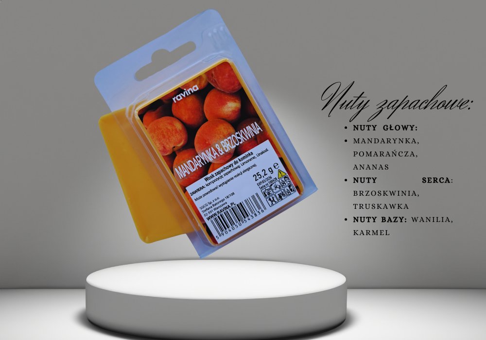 WOSK ZAPACHOWY DO KOMINKA RAVINA -MANDARYNKA & BRZOSKWIANIAKolekcja wosków RAVINA zawiera różne zapachy, każdy reprezentowany przez inny kolor. Tak więc jednocześnie tworząc większą różnorodność ...