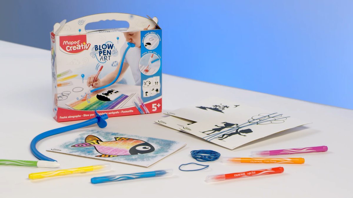 Maped creativ, flamastry dmuchane, String'artNietypowy sposób na kolorowanie - umieść flamaster w plastikowej nasadce z elastyczną rurką i dmuchaj w ustnik a kolorowa mgiełka osiądzie na kartce dając