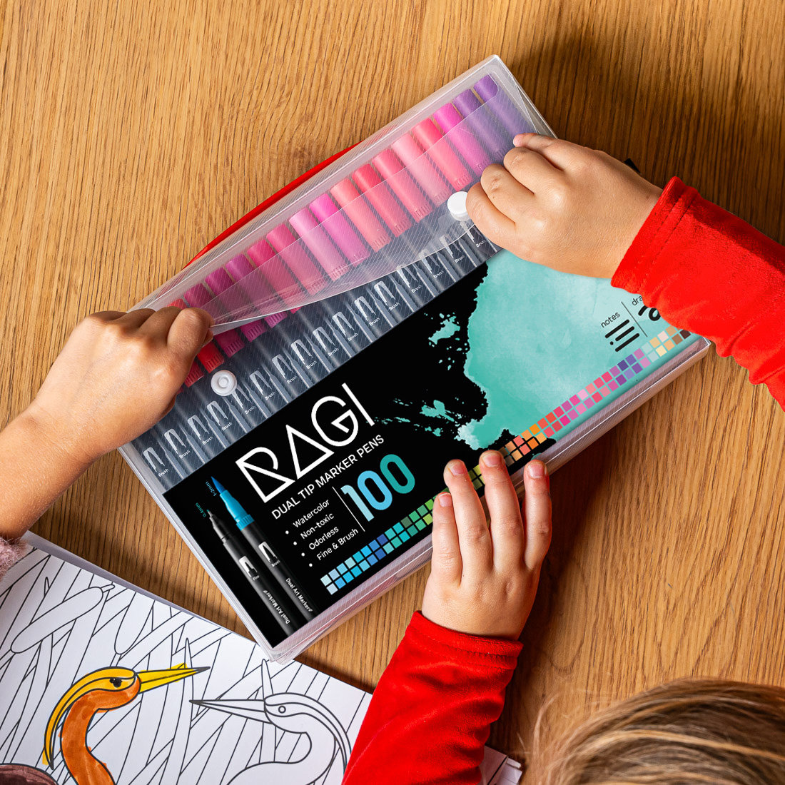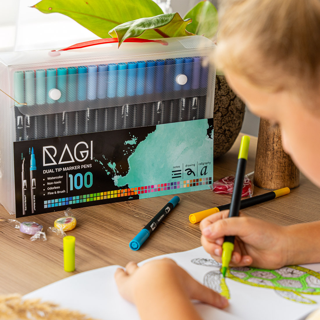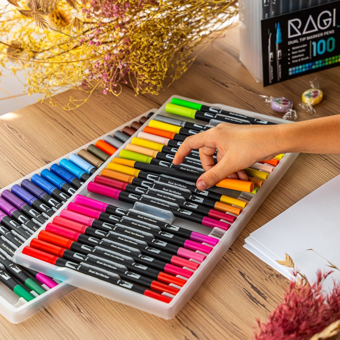 Właśnie zrecenzowałem RAGI Markery Akwarelowe 100 sztuk Mazaki Pisaki Flamastry Dwustronne Wodne Zestaw Markerów Akwarelowych