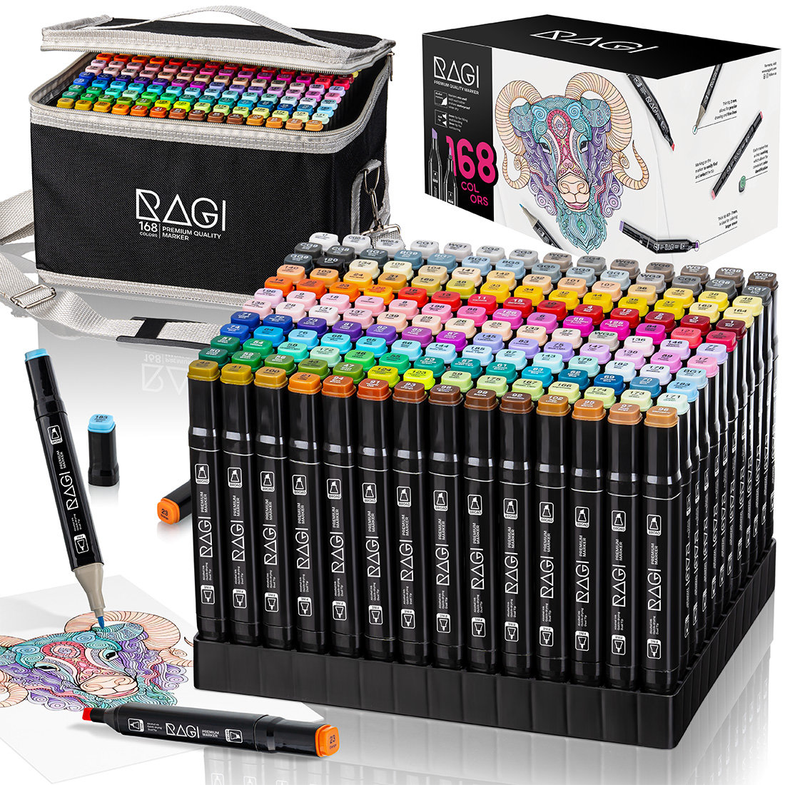 Właśnie zrecenzowałem Ragi, Markery Alkoholowe 168 szt, Dwustronne Mazaki Flamastry Pisaki, Torba + PODSTAWKA