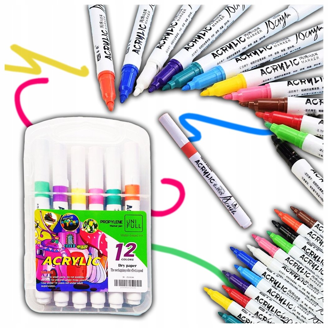 | Nazwa: | Markery Pisaki Akrylowe Flamastry Do Ubrań Kamieni 12 Szt. Prezent Urodziny |