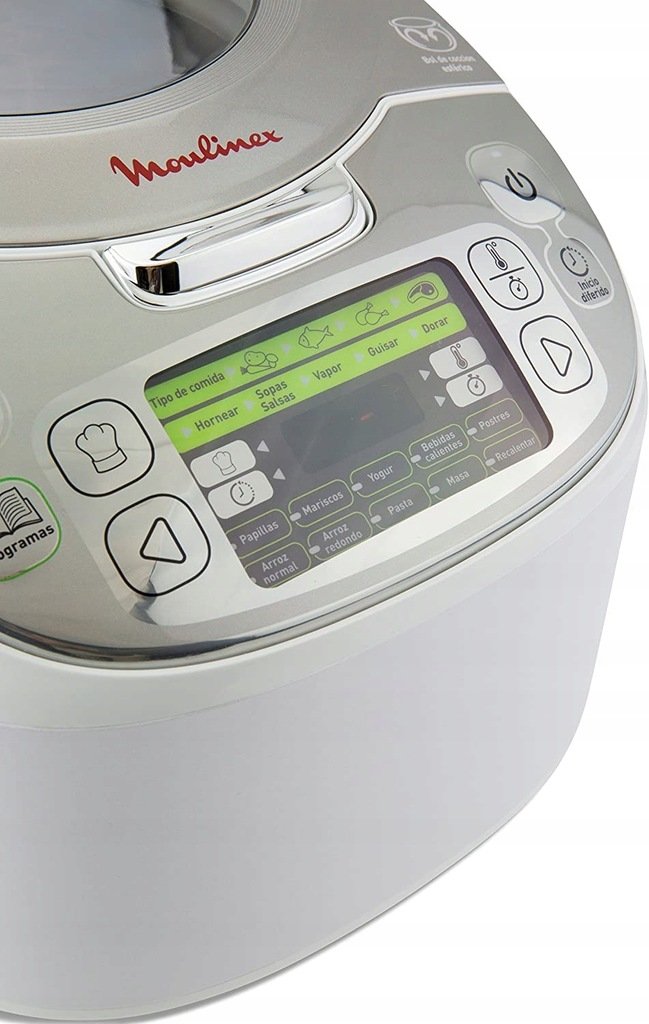 Moulinex MK812121 Maxichef Advance to zaawansowany multicooker, który pozwala przygotować szeroką gamę dań w prosty i szybki sposób. Dzięki inteligentnemu systemowi Fuzzy Logic, urządzenie automatycznie dostosowuje temperaturę i czas gotowania, zapewniając doskonałe rezultaty. Jest to idealny pomocnik w kuchni zarówno dla osób, które dopiero zaczynają swoją przygodę z gotowaniem, jak i dla doświadczonych kucharzy szukających szybszych i wygodniejszych rozwiązań.