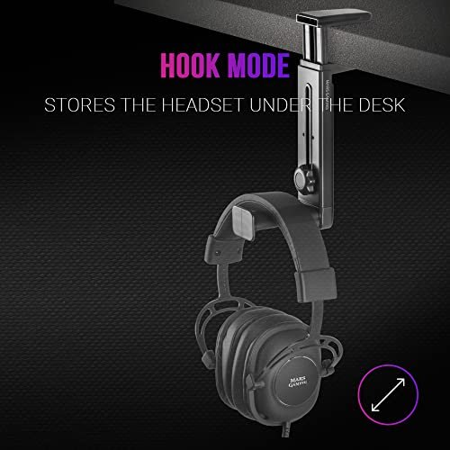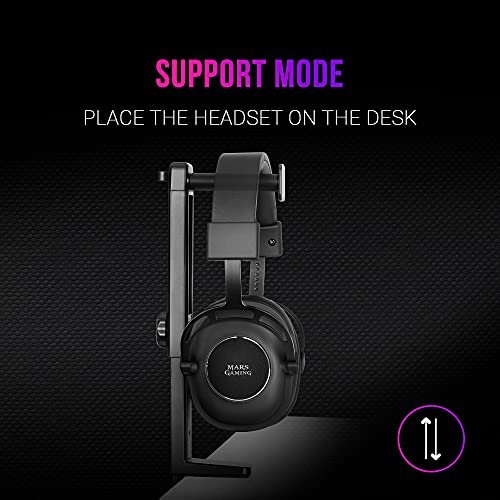 Mars Gaming MHH2, stojak na słuchawki, haczyk i stojak, zarządzanie kablami, regulowana wysokość, czarny MHH2 to najlepszy stojak na słuchawki 2 w 1: zainstaluj go pod lub na stole, nie zajmując dużo