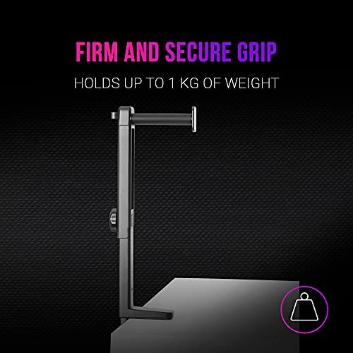 Mars Gaming MHH2, stojak na słuchawki, haczyk i stojak, zarządzanie kablami, regulowana wysokość, czarny MHH2 to najlepszy stojak na słuchawki 2 w 1: zainstaluj go pod lub na stole, nie zajmując dużo miejsca. Dzięki prostemu mocowaniu zaciskowemu do przymocowania do stołu, regulowanemu rozmiarowi i mechanizmowi 360° zapewniającemu doskonałą dostępność, możesz szybko uzyskać dostęp do słuchawek zarówno pod/na stole, jak i na nim/poza stołem, co maksymalnie optymalizuje przestrzeń i za pomocą kabla cały czas wycofany. INSTALACJA PODWÓJNEGO HAKA: Model MHH2 ma ekskluzywną podwójną konstrukcję, którą można zainstalować jako dolny hak lub górny wspornik, a jego rozmiar można łatwo regulować, aby w pełni dostosować się do własnych preferencji; Dzięki MHH2 zoptymalizujesz swoją przestrzeń do maksimum TRYB HOOK: W trybie haka umieść słuchawki na wsporniku z haczykiem pod stołem, wygodnie zbierz kabel i obróć jego konstrukcję, aby przechowywać je pod stołem TRYB STOJAKA: Aby używać w tym trybie wystarczy położyć słuchawki na podstawce na stole, zebrać kabel w prowadnicy i obrócić jego konstrukcję tak, aby umieścić je na zewnątrz. MOCNY CHWYT: Mechanizm zaciskowy MHH2 utrzymuje go całkowicie przymocowanym do stołu; Oprócz tego, że jest łatwy w użyciu, ma nacisk i wytrzymałość niezbędną do utrzymania ciężaru do 1 kg i pozostaje zawsze w dowolnym miejscu, gdzie go umieścisz. ROZSZERZONA TRWAŁOŚĆ: jest doskonale zoptymalizowany do stosowania na stołach, półkach i dowolnej poziomej powierzchni dzięki do systemu zaciskowego i jest wyposażony w płynny i łatwy w obsłudze mechanizm obrotowy. Ponadto MHH2 chroni kaski i ich powierzchnię chwytną dzięki wbudowanym nakładkom ochronnym.