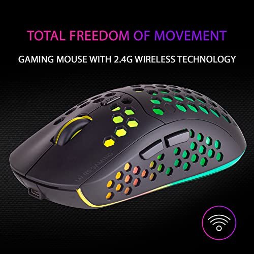 MARSGAMING Mars Gaming MMW3, bezprzewodowa mysz do gier, RGB Flow, ultralekka 79 g, 3200 DPI, czarna Ultralekka konstrukcja ula z przepływem RGB: Zbudowana w oparciu o ultralekką konstrukcję ula, ...