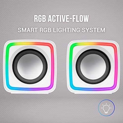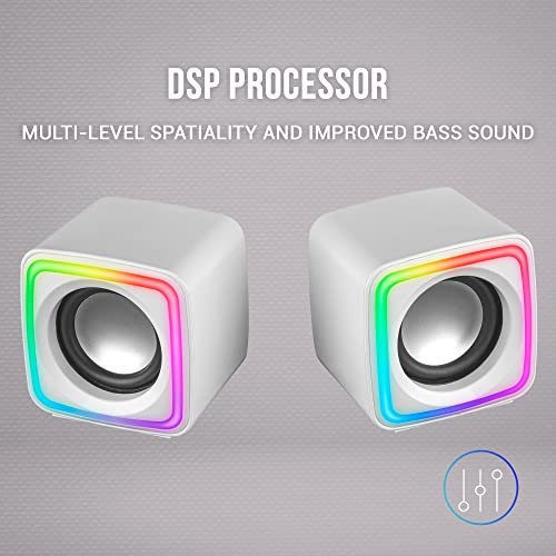 MARSGAMING MSCUBEW Białe, kompaktowe głośniki do gier RGB, procesor dźwięku DSP 8 W, regulacja głośności przy 8 W MOC: Głośniki do gier o mocy 8 W o wyjątkowym dźwięku i niewielkich rozmiarach; ...