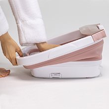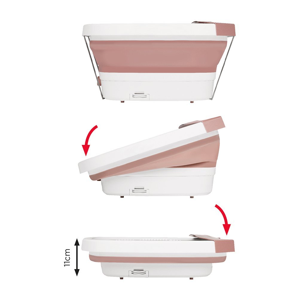 Masażer REVLON Foldable Footspa RVFB7034E najlepszy zabieg upiększający dla stóp. Urządzenie nagrzewa się komfortowo i utrzymuje stałą temperaturę wody. Do indywidualnego zabiegu można wybrać jeden z trzech ustawień temperatury. Cicha funkcja bąbelkowa i nakładka z wypustkami masującymi zapewniają przyjemny i relaksujący masaż. Urządzenie posiada otwór na olejki eteryczne, które można dodać do kąpieli dla jeszcze bardziej zmysłowego zabiegu. Pomoc w nalewaniu ułatwia opróżnianie spa, a kompaktowa, składana konstrukcja umożliwia łatwe przechowywanie.