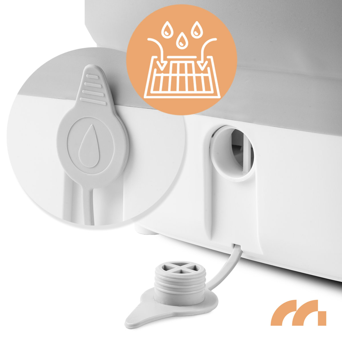 Rolki masujące można łatwo wyjąć i umyć, co zapewnia higienę użytkowania. Zewnętrzna powierzchnia urządzenia jest wykonana z materiału łatwego do czyszczenia – wystarczy przetrzeć ją wilgotną szmatką. Dodatkowo wbudowany odpływ wody ułatwia usuwanie resztek po użyciu, co pozwala utrzymać urządzenie w idealnym stanie przez długi czas.