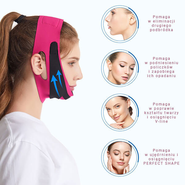 Bez operacji, bez bólu, ta maska liftingująca rozpocznie podróż do poprawy owalu Twojej twarzy! Wykonana z elastycznego, oddychającego, miękkiego materiału zapinanego na rzep, który poprawia komfort podczas noszenia i napinania szyi, policzków i podbródka. Daje naturalny efekt liftingu twarzy. Naciąga mięśnie, pomaga pozbyć się zbędnej tkanki tłuszczowej, wygładza zmarszczki, dzięki czemu poprawia jej kształt i nadaje upragniony V-shape. W trakcie noszenia maski naciskana jest tkanka twarzy, przez co poprawia się krążenie krwi i napinają się mięśnie szyi, policzków i podbródka, a Twoja skóra nabiera blasku.