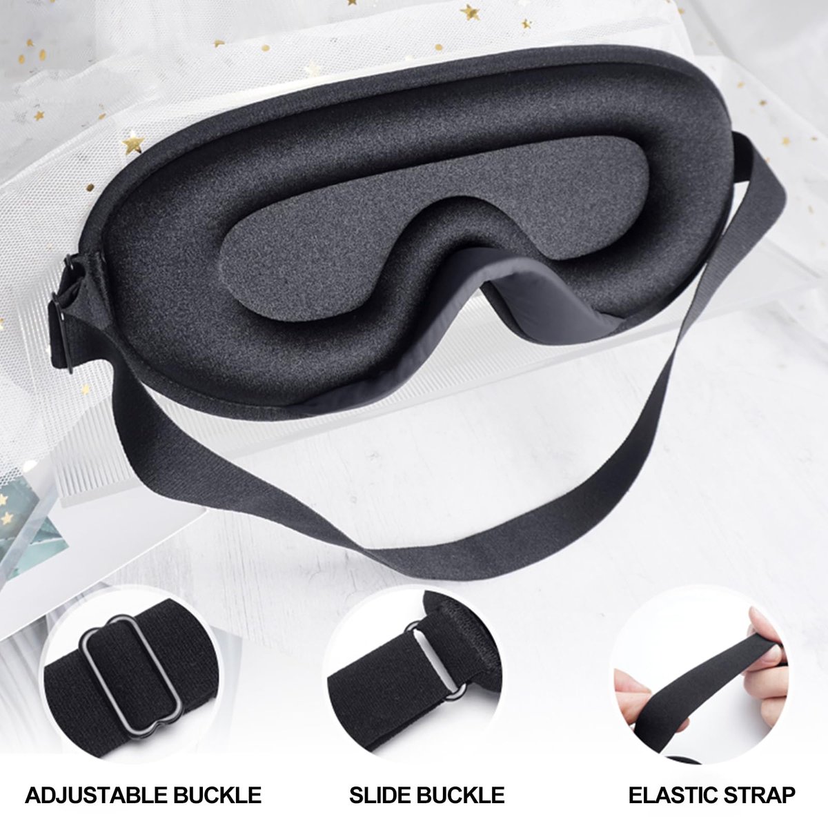 REGULOWANY ELASTYCZNY PASEK: Opaska na oczy do spania posiada elastyczną przesuwaną klamrę i elastyczne paski mocujące, które pozwalają na dopasowanie maski do obwodu głowy, zmniejszając nacisk na tył głowy i umożliwiając spokojny sen przez całą noc.