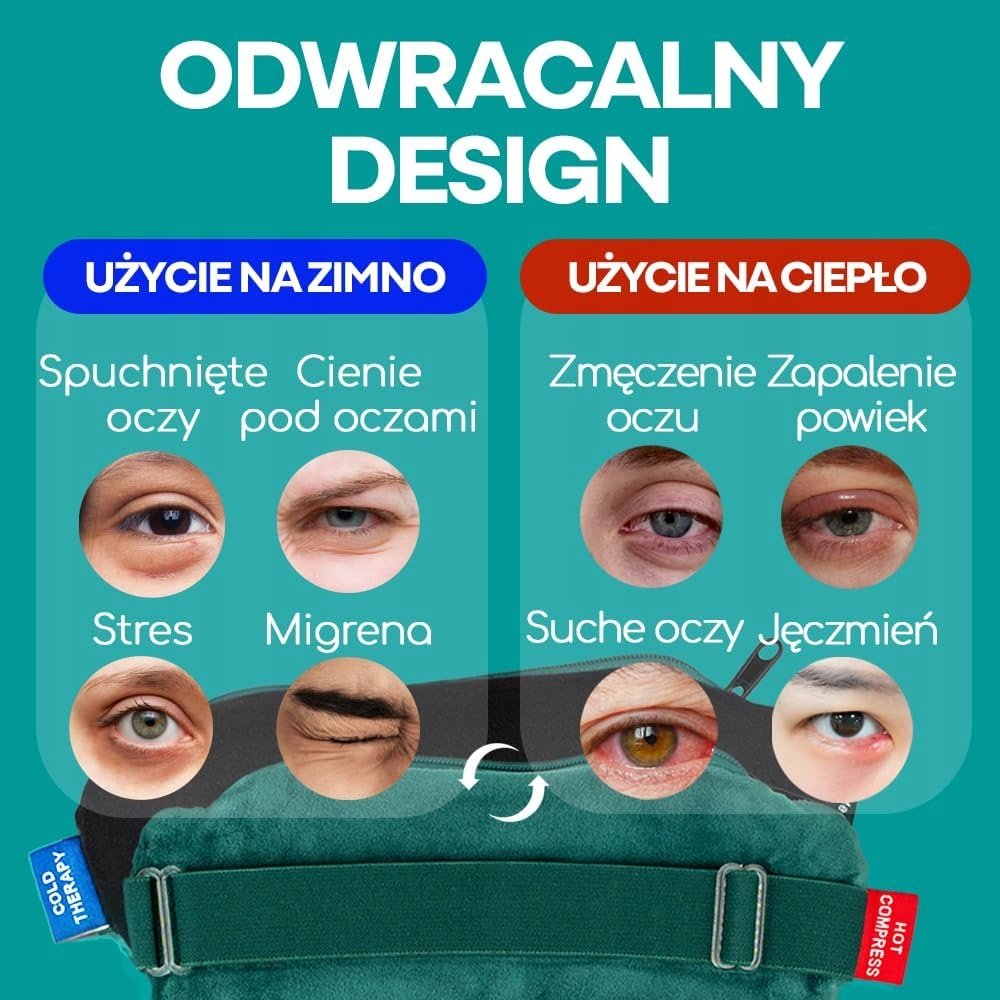 ✅ Można ją używać na ciepło (mikrofalowanie przez kilka sekund) lub na zimno (chłodzenie w lodówce), by pomóc w łagodzeniu objawów suchych oczu, jęczmienia, zapalenia brzegów powiek i MGD.