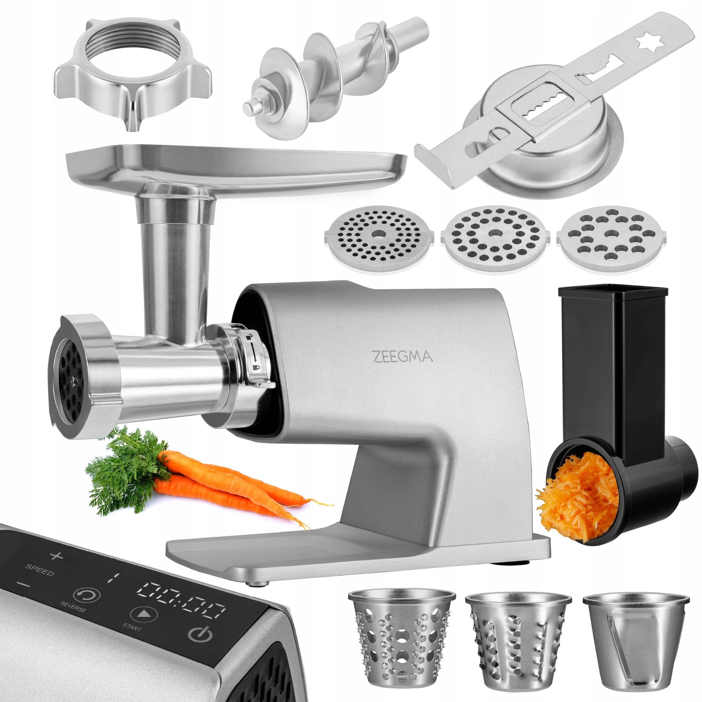 | Funkcje urządzenia: | mielenie, bieg wsteczny, szatkowanie, krojenie na plasterki |