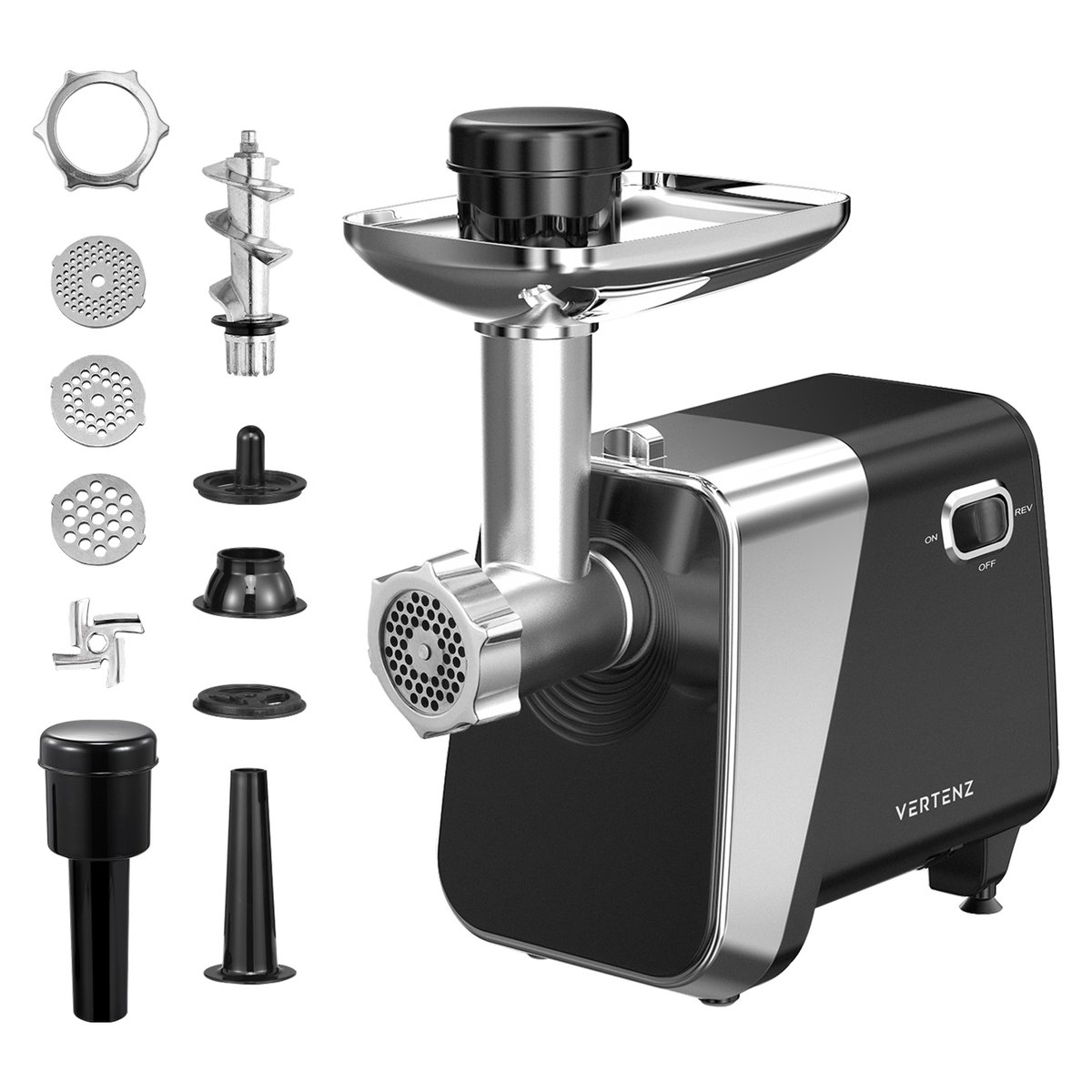 Właśnie zrecenzowałem Maszynka do mielenia mięsa Vertenz Dynamic 40, 600W, 3 grubości mielenia, nakładka do kiełbas i kebbe, tryb biegu wstecznego, schowek na akcesoria, Srebrna