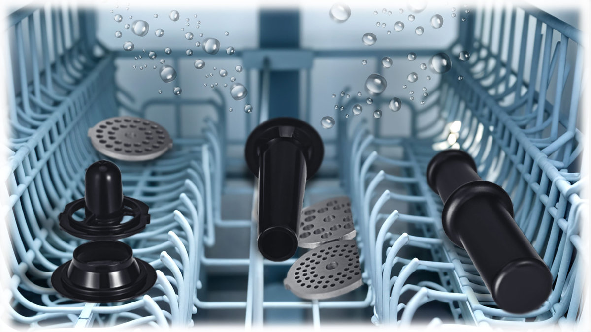 Nasz zestaw to wszechstronność w Twojej kuchni! 3 sitka (3 mm, 5 mm, 7 mm) pozwalają tworzyć idealne tekstury mielonego mięsa, a dodatkowe nasadki umożliwiają przygotowanie domowych kiełbas, kebbe i faszerowanych przysmaków.